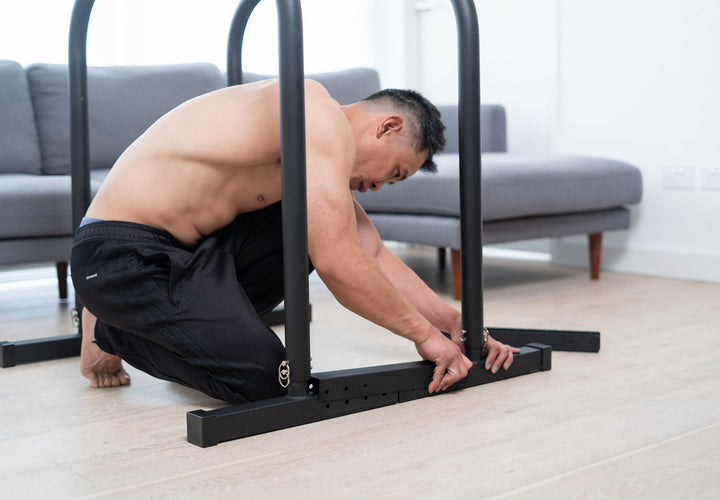 Meet the B-Bars, our parallel bars designed for your living room. Build strength in your upper body and core with bodyweight exercises. Perform pressing and horizontal pulling exercises (rows, dips) on the 91cm height and vertical pulling (pull-ups/chin-ups) on the 129cm height. Easy setup and freestanding – quick release clickpins for a speedy setup (no screws or bolts and no attachments to external fixtures.