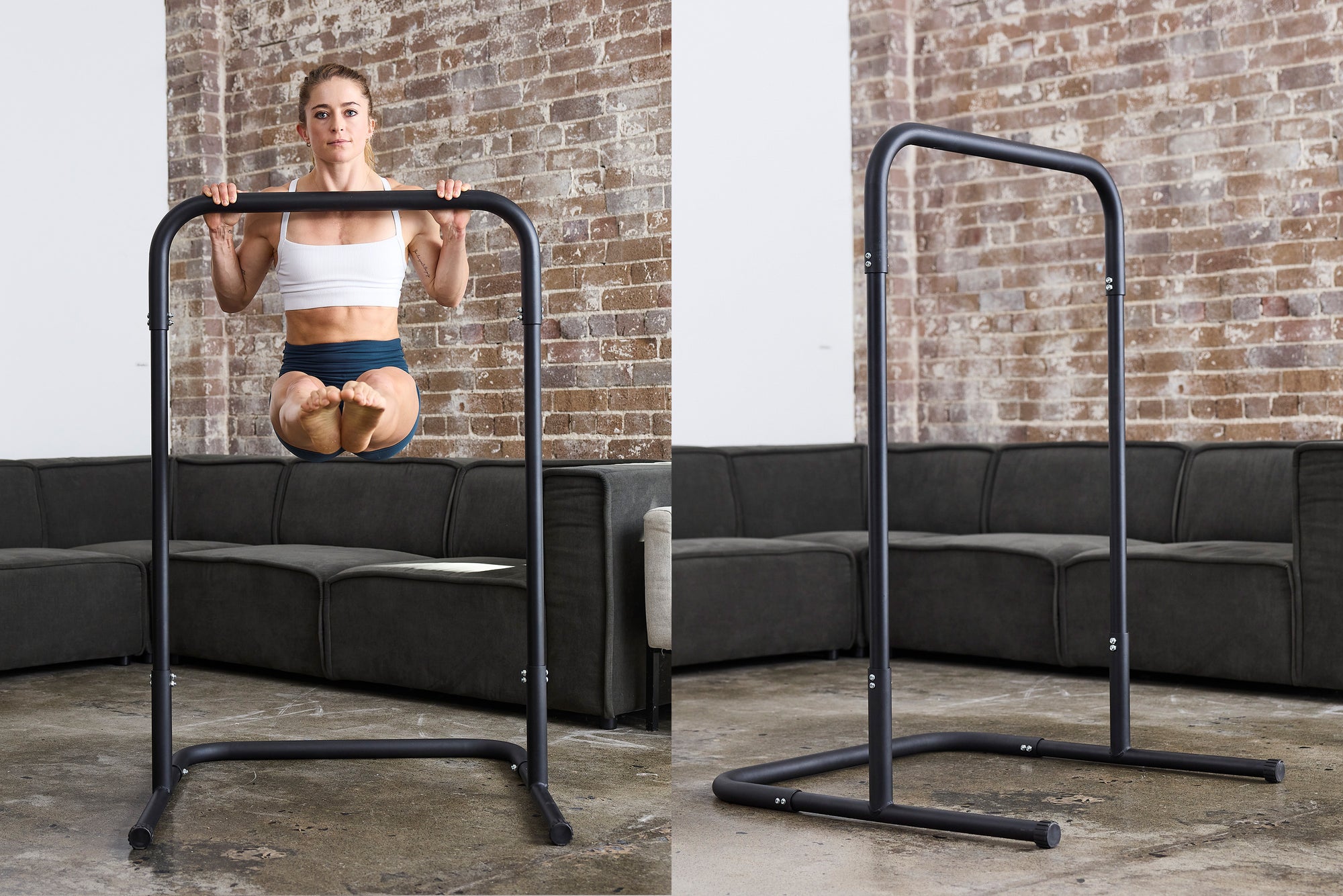 The dual-height pull-up bar with zero setup – just flip it to change heights. Perform hanging exercises like chin-ups and leg raises from the high bar (137cm) or rows and levers from the low bar (89cm). The top height prevents you from swinging or kipping, making you practice perfect technique, with an option of using your feet for assistance if you are just getting started. Our signature thick bar to build a super strong grip. Completely standalone.