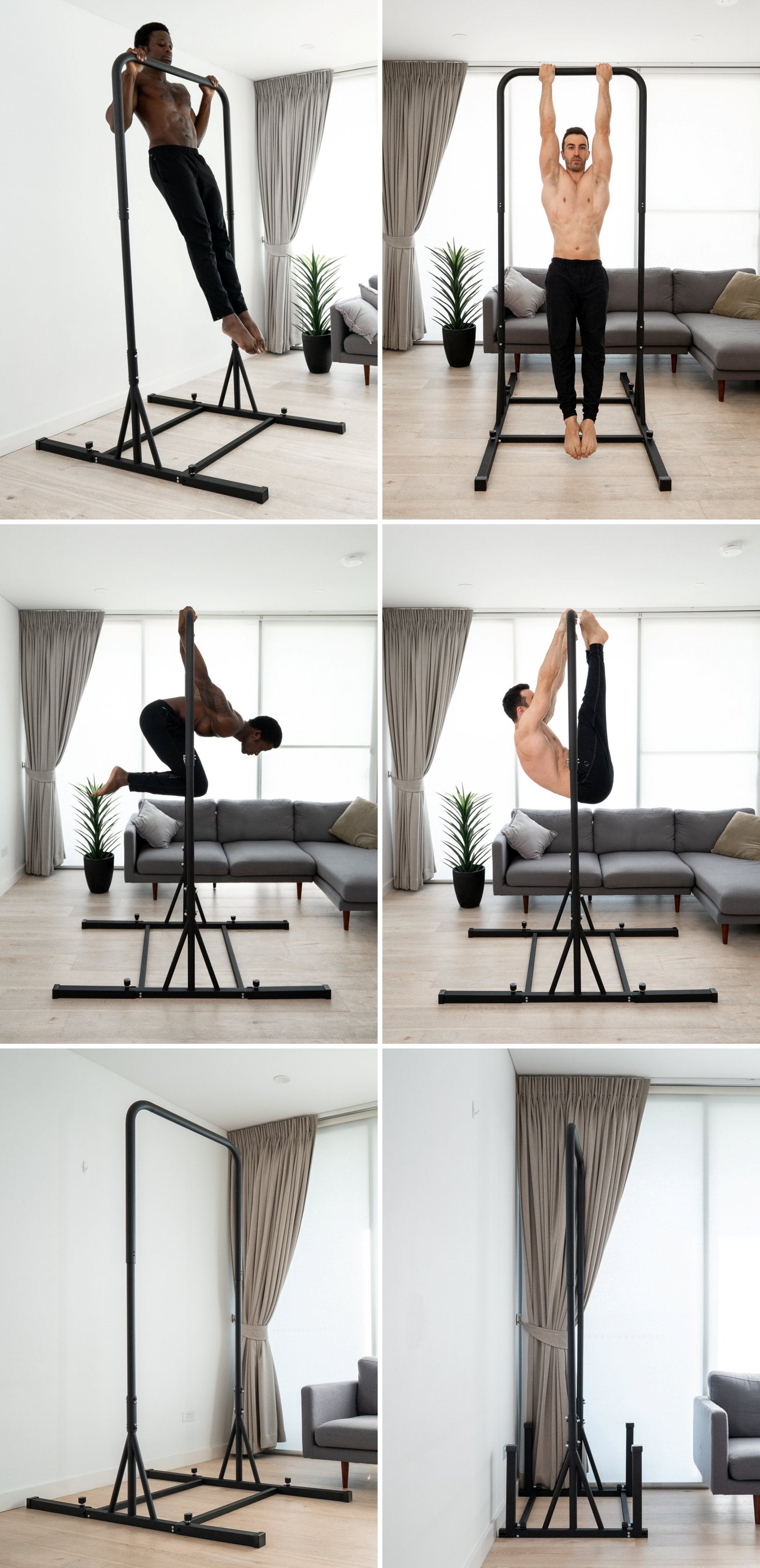 The Big Bar is 205cm tall allowing you to perform exercises from a dead hang. Lightweight, foldable legs for compact storage and a secret 112cm height for muscle-up training