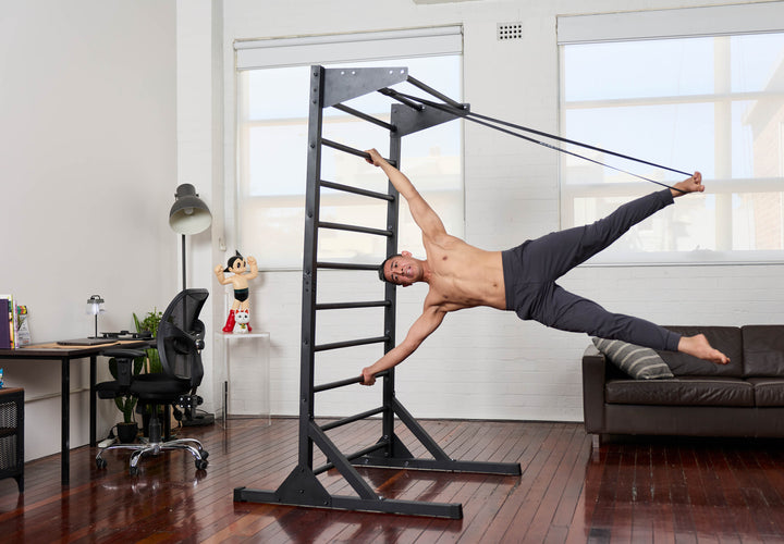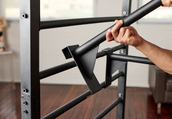 Classic wall-bars re-designed for any home. Completely freestanding with an in-built pull-up bar and removable dip bars for upper body strength. Perform flexibility exercises using the horizontal bars for a deeper stretch, the core bar for strict hanging core exercises and the in-built pull-up bar for pull-ups and chin-ups. Clip and dip to install parallel bars in seconds.